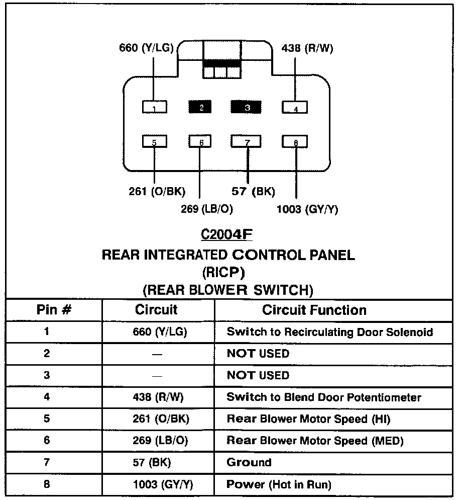 Rear Integrated Control Panel (Rear Blower Switch):