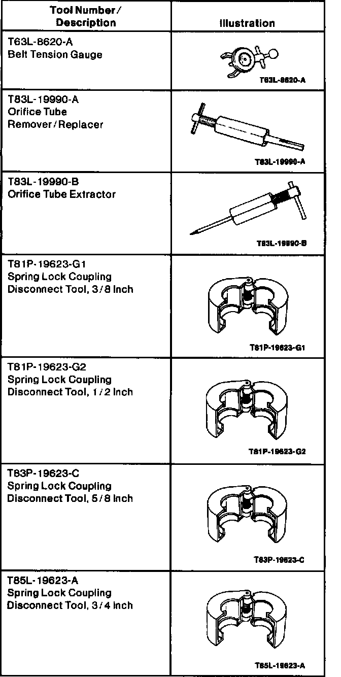 Ford Motor Company supports the efficient use, recovery, and recycling of R-134a in specified vehicle air conditioners. Ford Motor Co. recommends the use of a U.L. approved recovery/recycling device such as flotunda R-134a A/C Service Center 176-00001 (or other device which meets SAE Standard J 1991) during any air conditioning system repair and recharge procedure which requires the air conditioning system to be discharged.