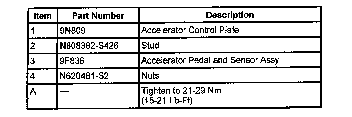 2. Install and tighten the accelerator pedal and sensor assembly nuts to 21-29 nm (15-21 lb-ft).