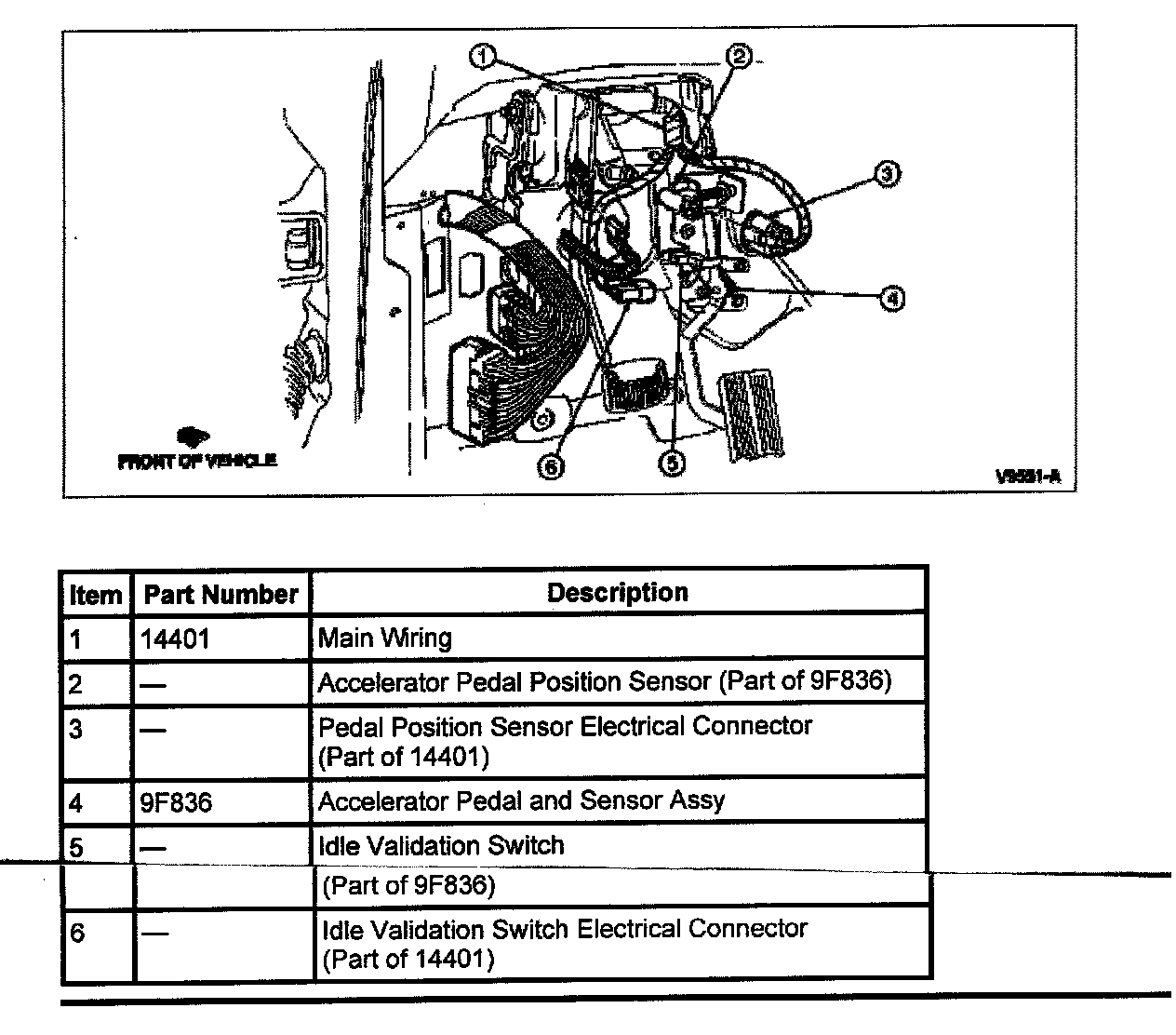 1. Disconnect the electrical connectors from the idle validation switch and the accelerator pedal position sensor.