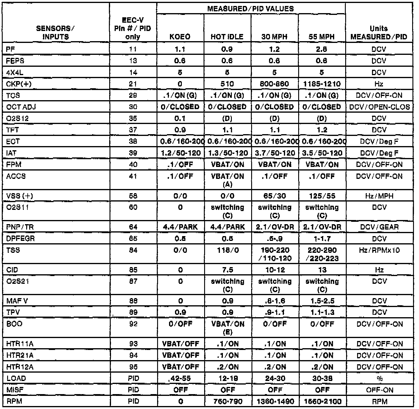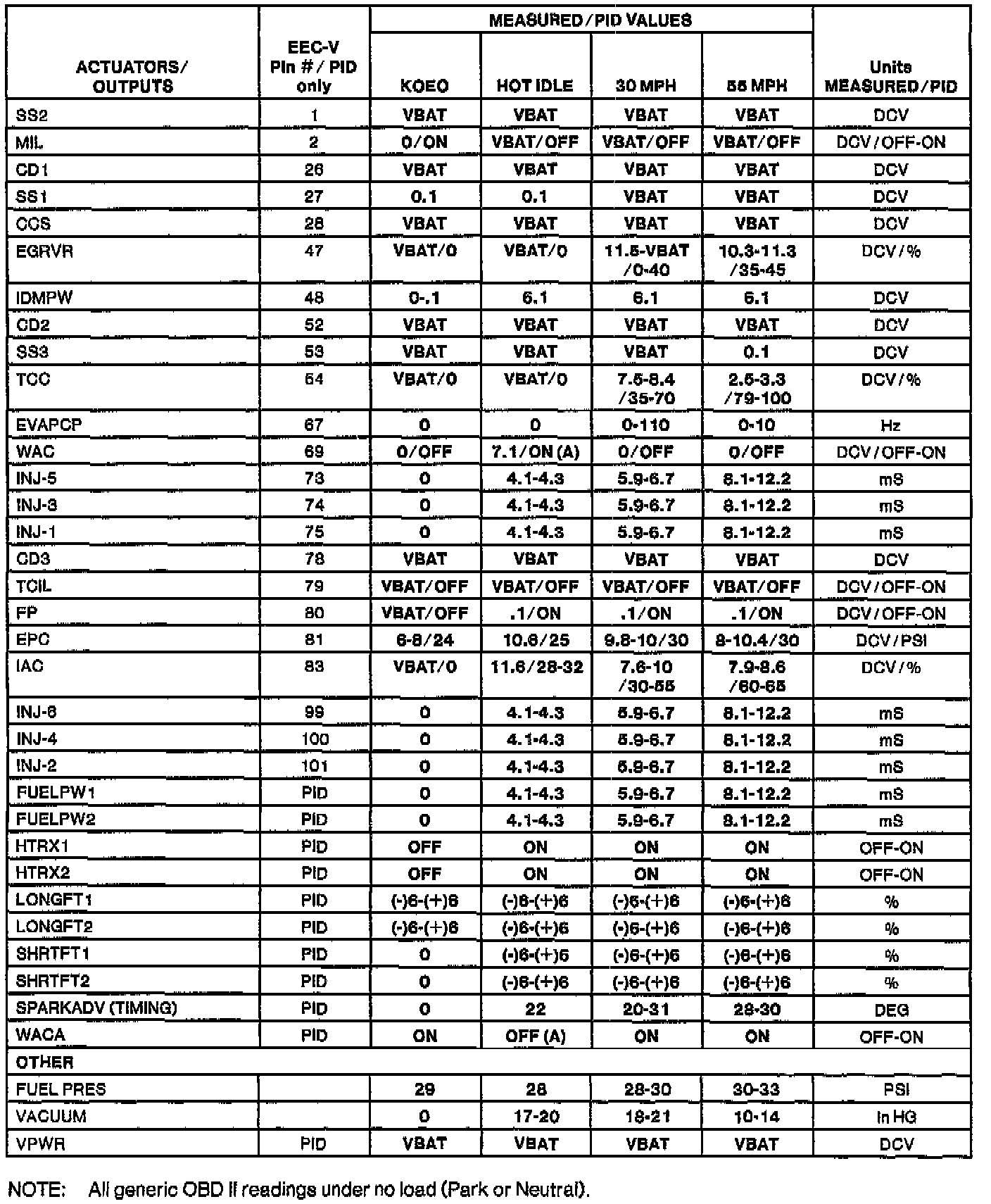 H Values shown are commanded by the PCM and may not be actual.