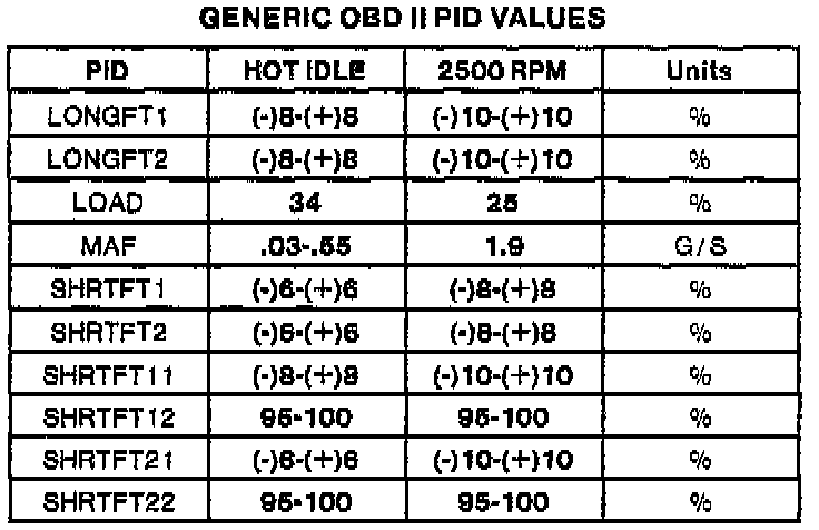 Generic OBDII Parameter Identification Values