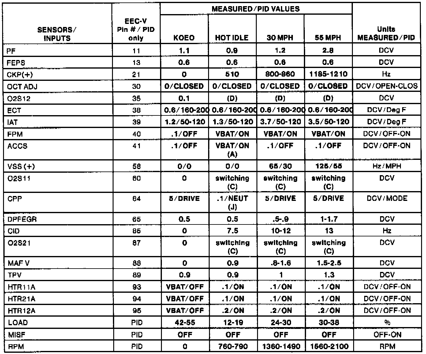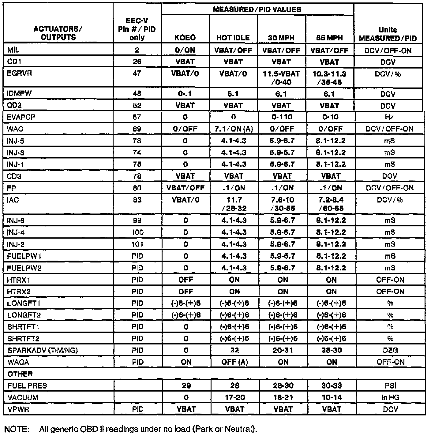 H Values shown are commanded by the PCM and may not be actual.