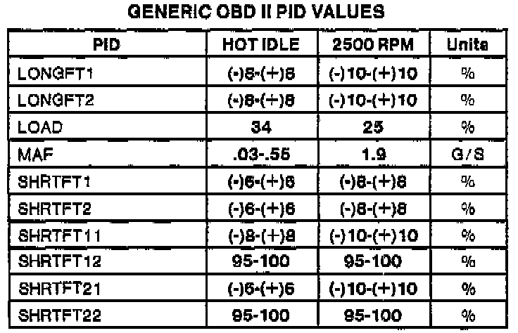 Generic OBDII Parameter Identification Values