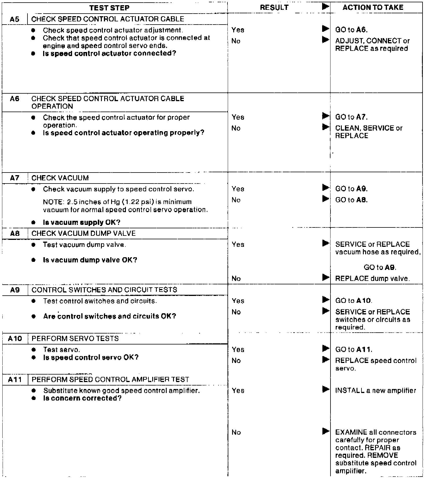 Test A: Speed Control Inoperative.: