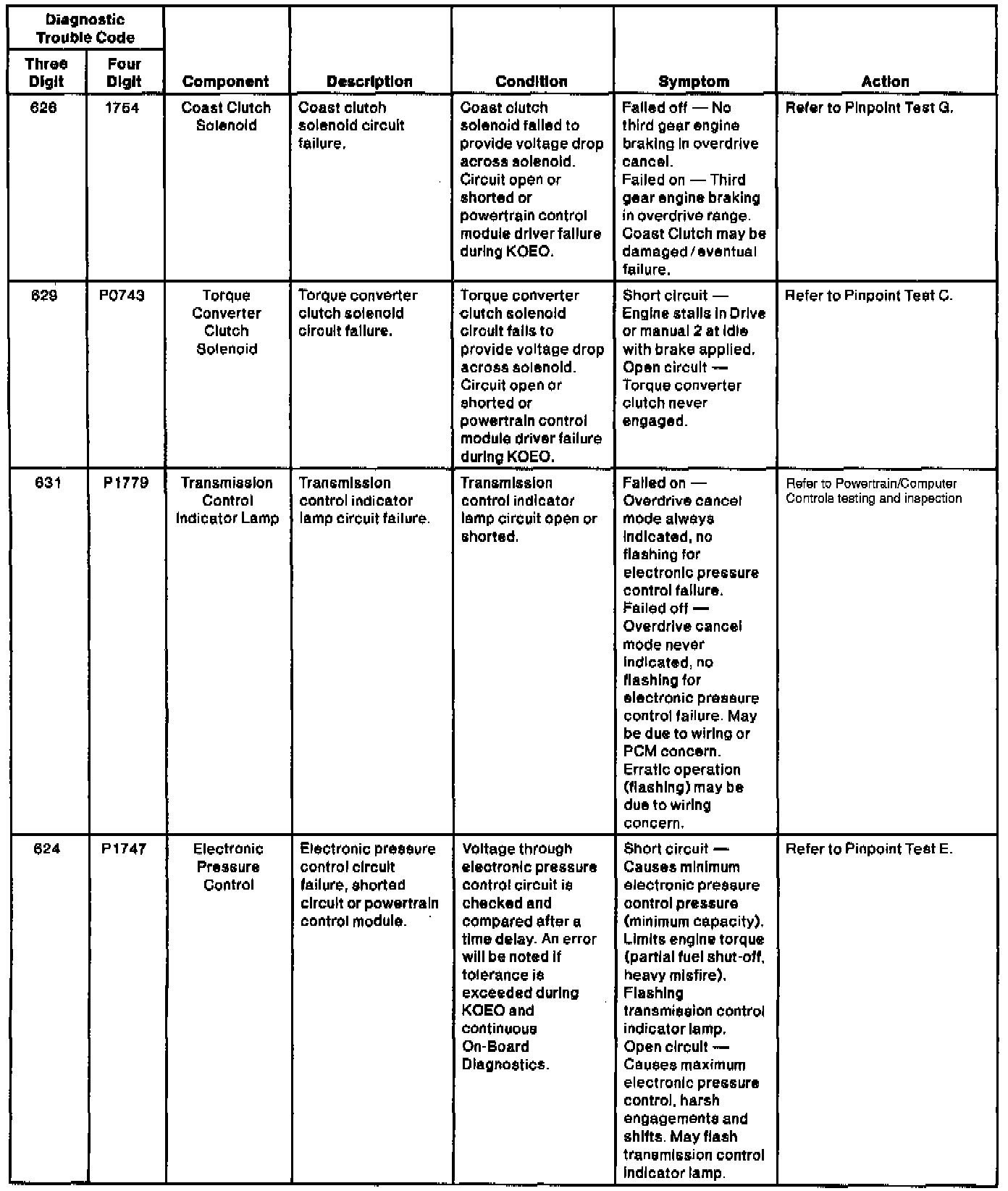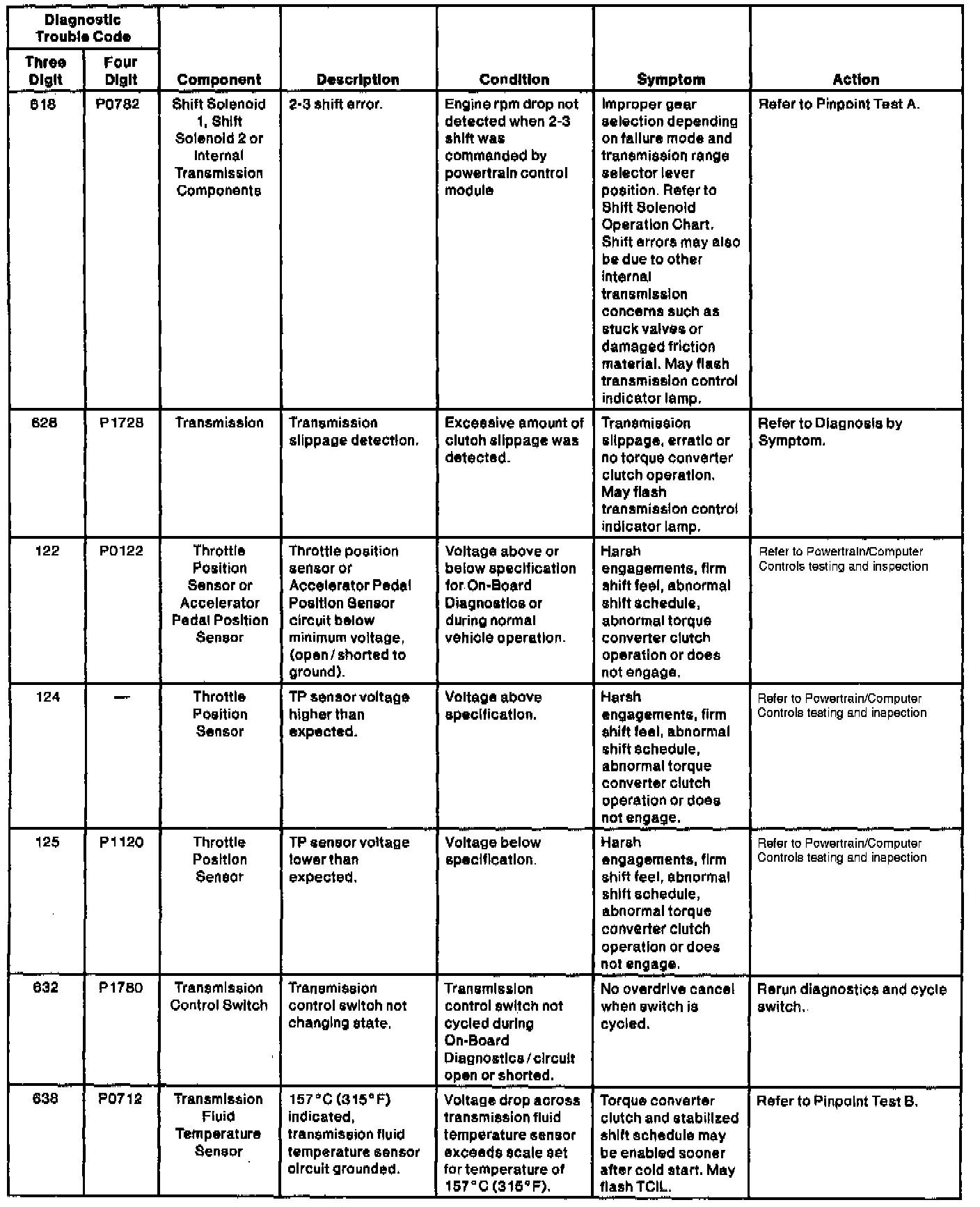 Diagnostic Trouble Code Charts (cont'd):