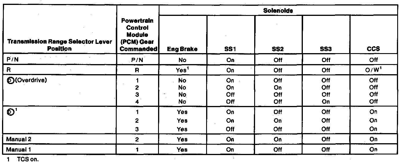 The chart shows normal solenoid operation for given operating modes.