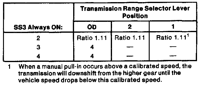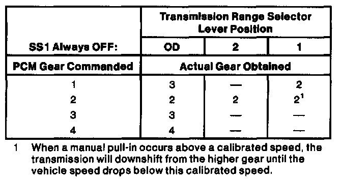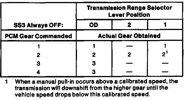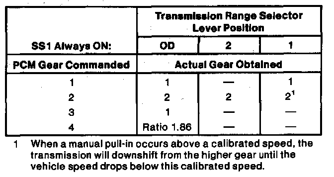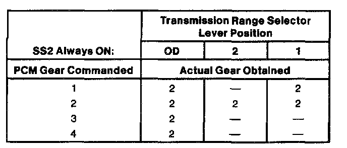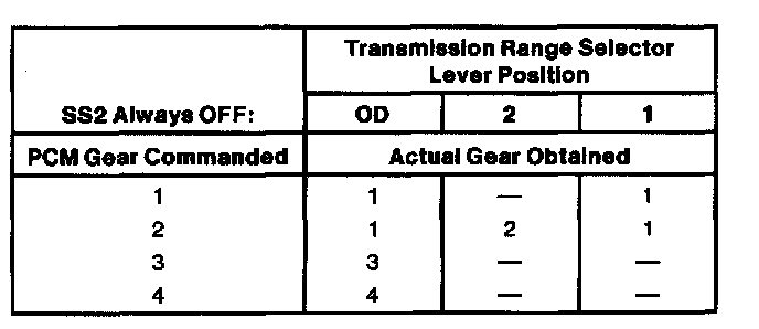 NOTE: 2nd and 4th gear in O/D position can only be obtained with sufficient EPC pressure (ie., no short in EPC circuit can be present).