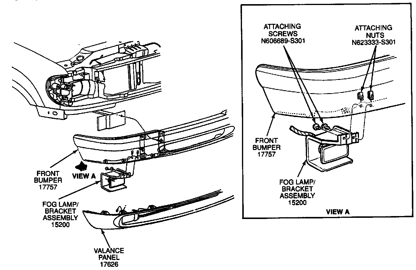 2. Remove nut retaining lamp to fog lamp mounting bracket (15266).