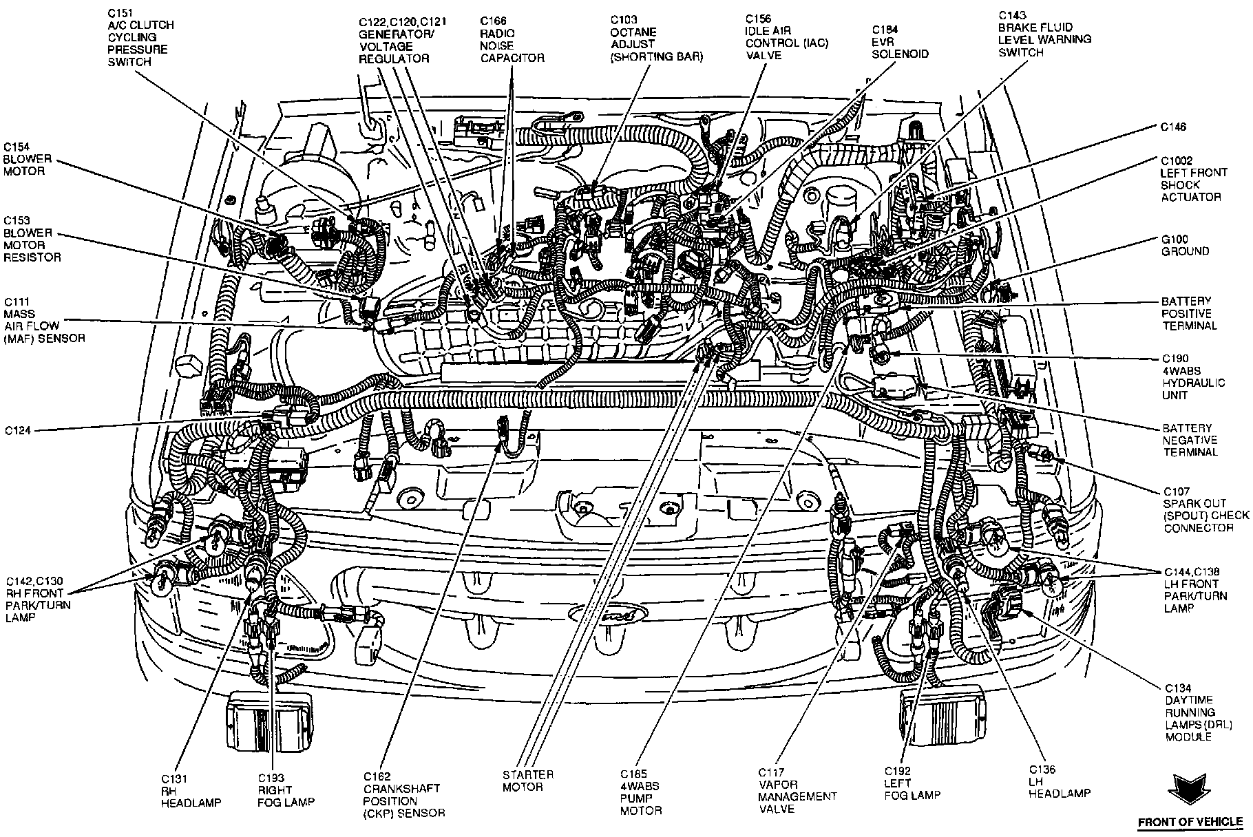 The Mass Air Flow Sensor is located at the RH rear corner of the engine compartment.