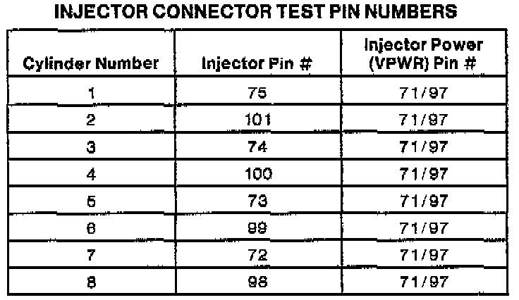 Injector Connector Test Pin Numbers: