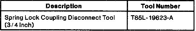 5. Disconnect the suction accumulator/drier, using Spring Lock Coupling Disconnect Tool T85L-19623-A, and cap the openings to prevent the entry of dirt and moisture.
