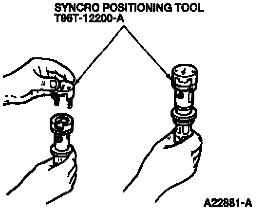 CAUTION: Syncro Positioning Tool T96T-12200-A must be obtained prior to installation of the replacement synchronizer assembly. Failure to follow this procedure will result in the fuel system being out of time with the engine, possibly causing engine damage.