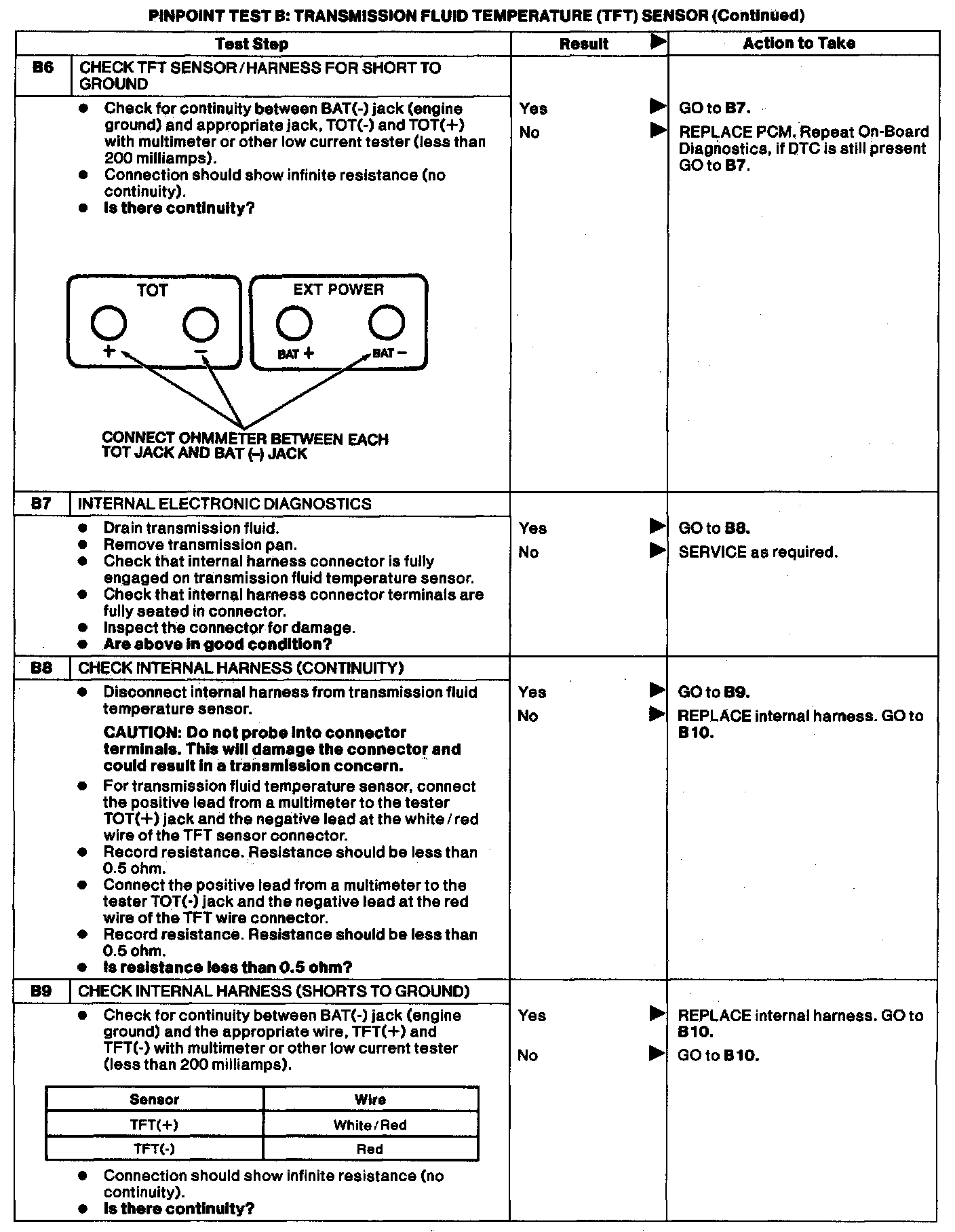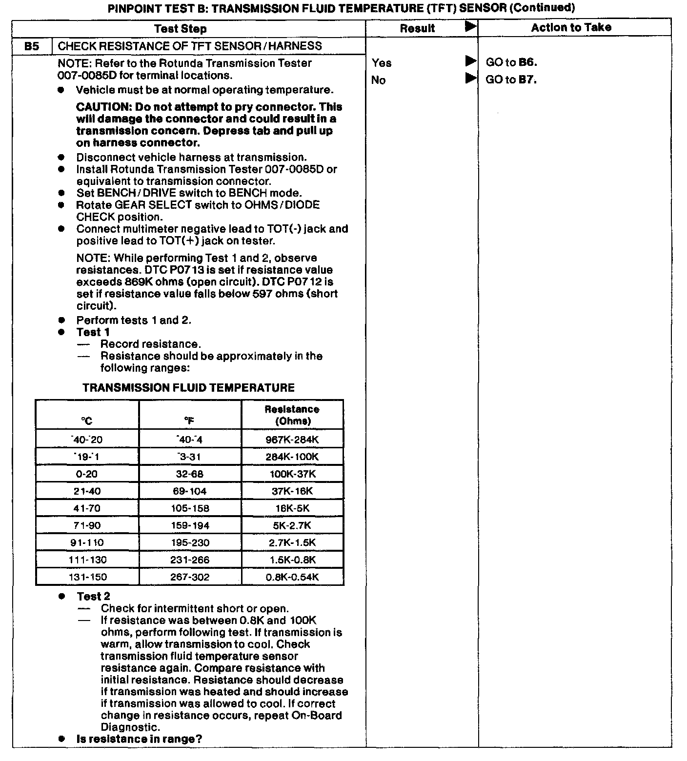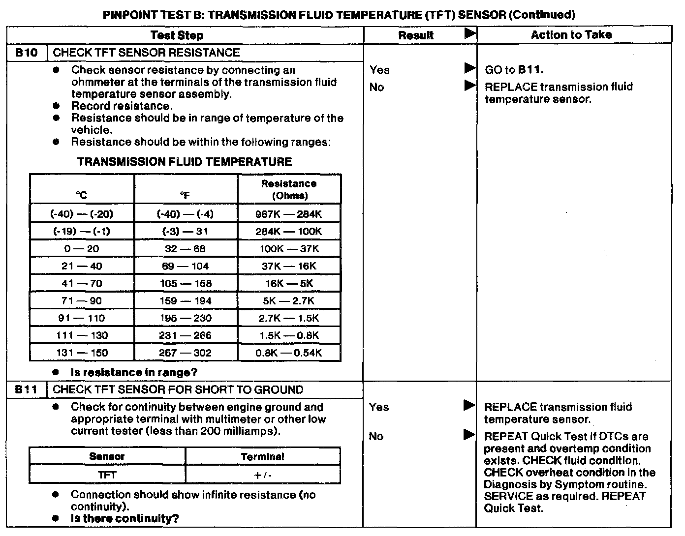 Pinpoint Test B - Transmission Fluid Temperature (TFT) SensorDTC List: P1711 TFT sensor out of on-board diagnostic range