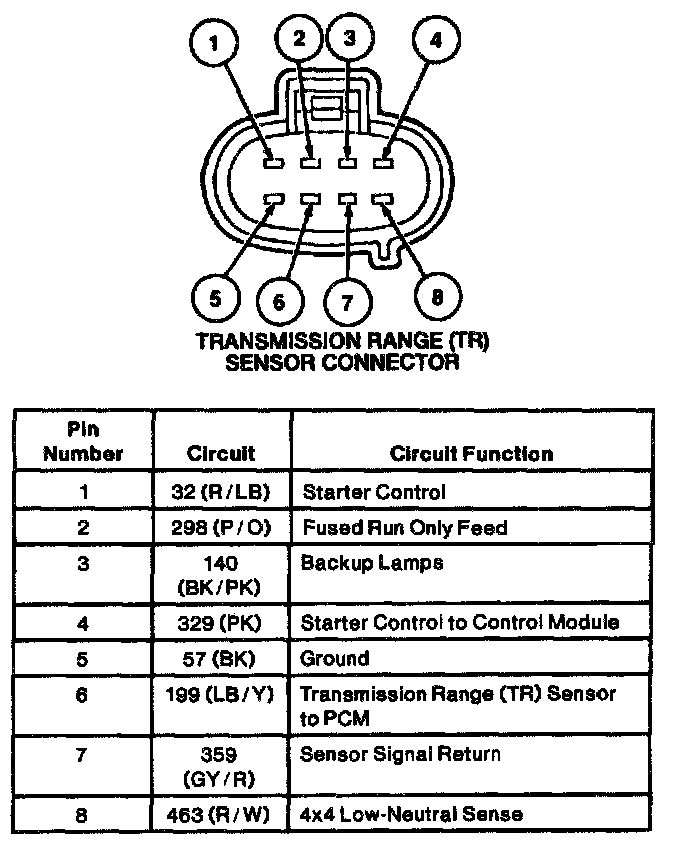 NOTE: This pinpoint test is intended to diagnose the transmission range (TR) sensor electrical system only. To prevent replacement of good components, be aware that the following areas may be at fault: