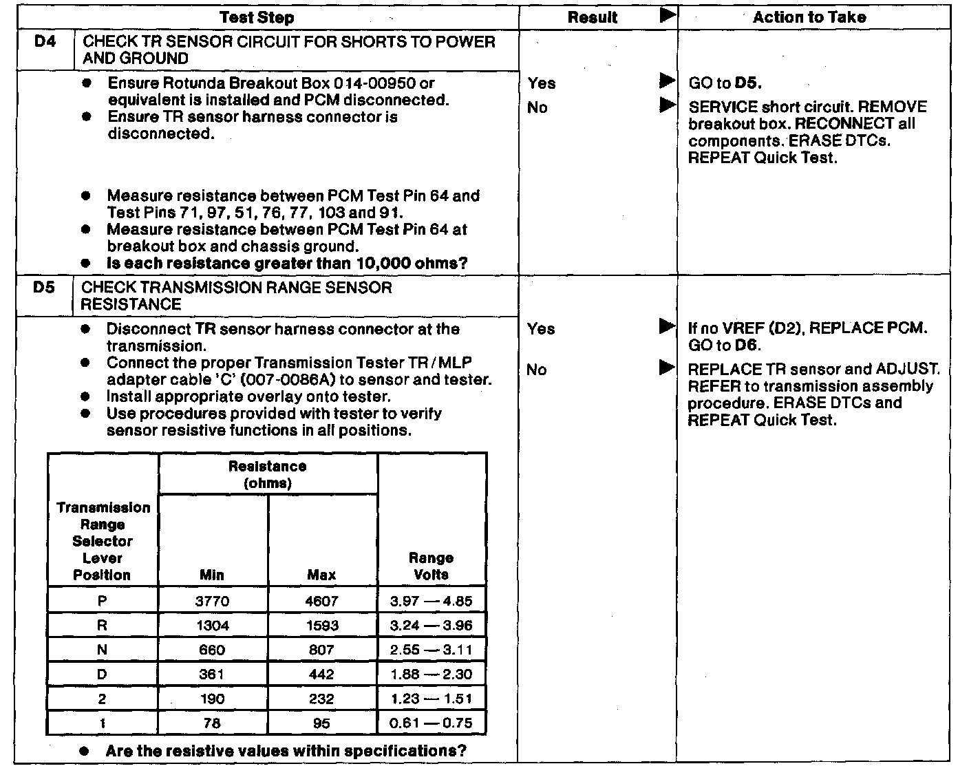 Pinpoint Test D - Transmission Range (TR) SensorDTC List: P0707 TR sensor or circuit shorted