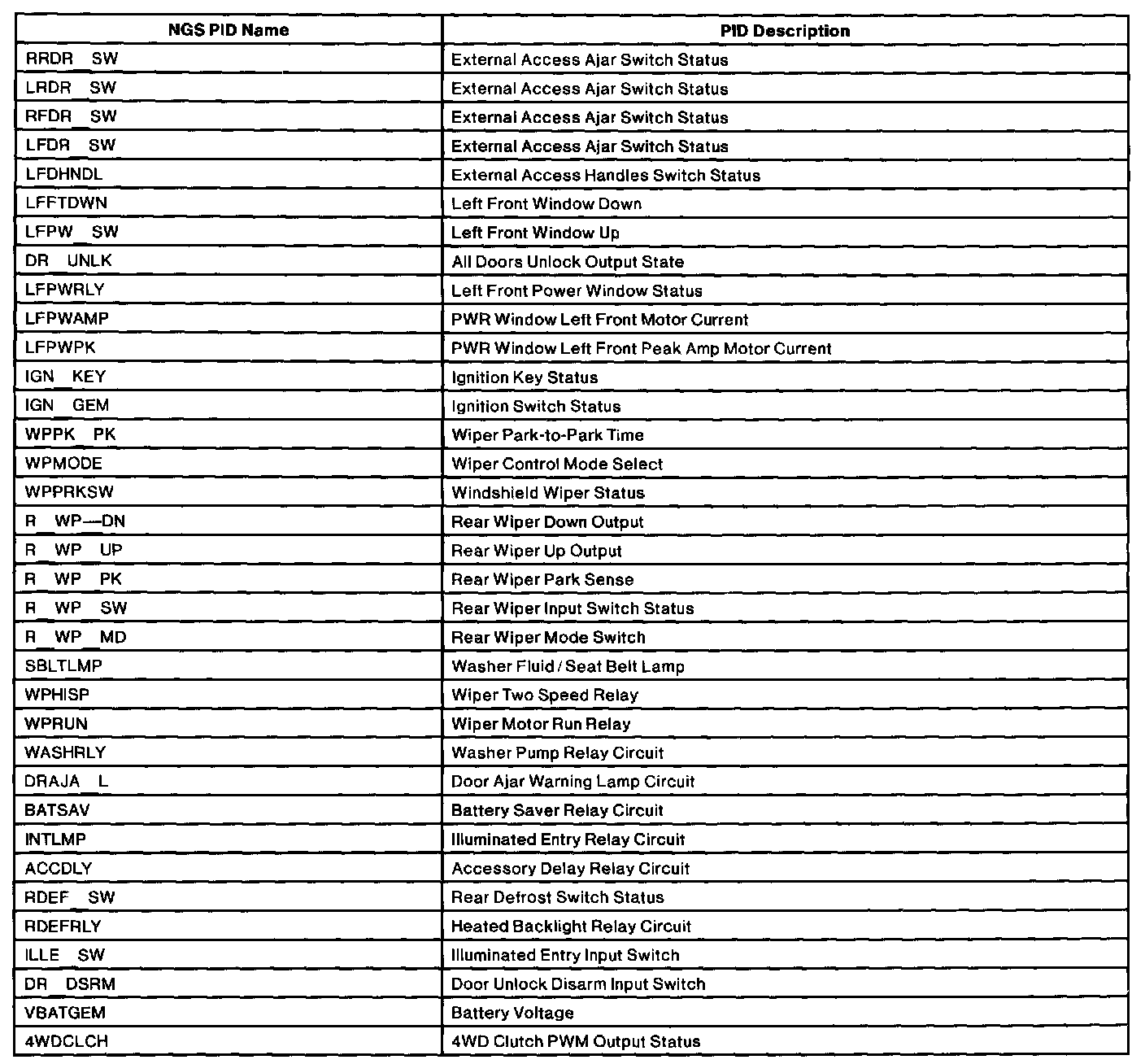 Parameter Identification Display (PID) Chart