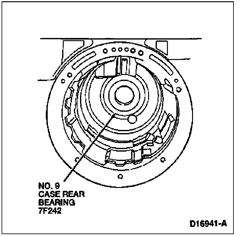 3. With transmission in the vertical position, coat No. 9 case rear bearing with petroleum jelly and install the No. 9 case rear bearing on the transmission case boss.