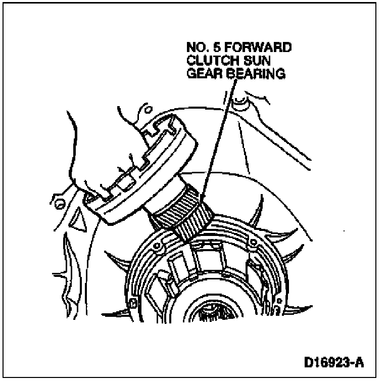 12. Install forward clutch sun gear, No. 5 forward clutch sun gear bearing, reverse sun gear and No. 4 forward clutch hub bearing.