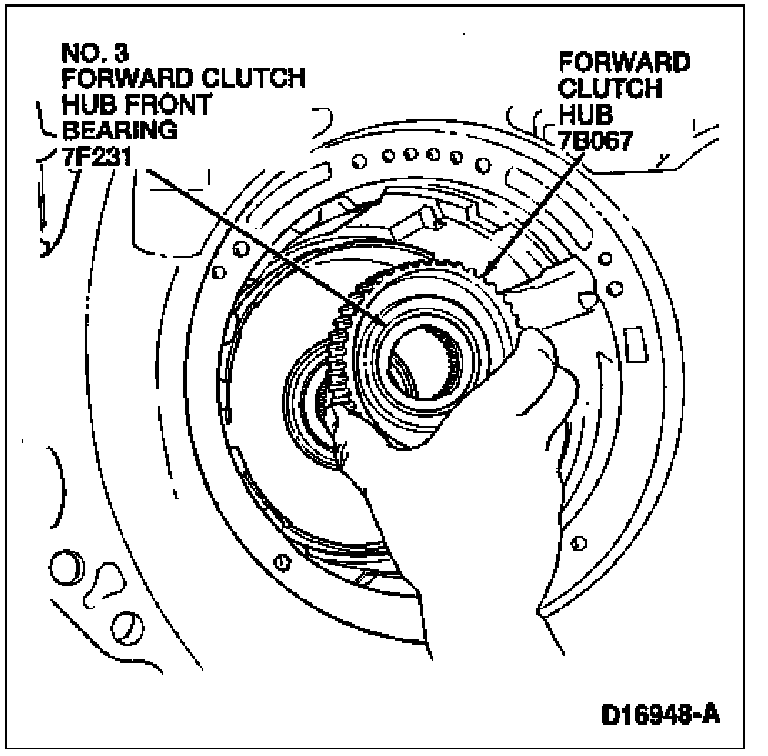 14. Install forward clutch hub and No. 3 forward clutch hub front bearing.