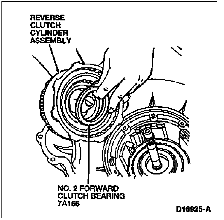 Install reverse clutch cylinder assembly and No. 2 forward clutch bearing.