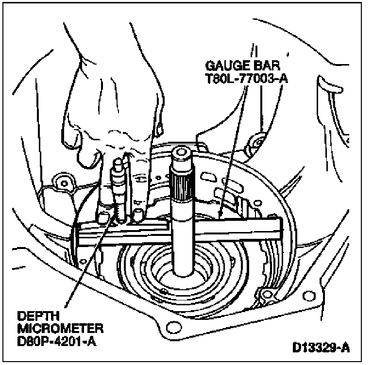 Measure the intermediate clutch clearance using Depth Micrometer D80P- 4201-A or equivalent and Gauge Bar T80L-77003-A.