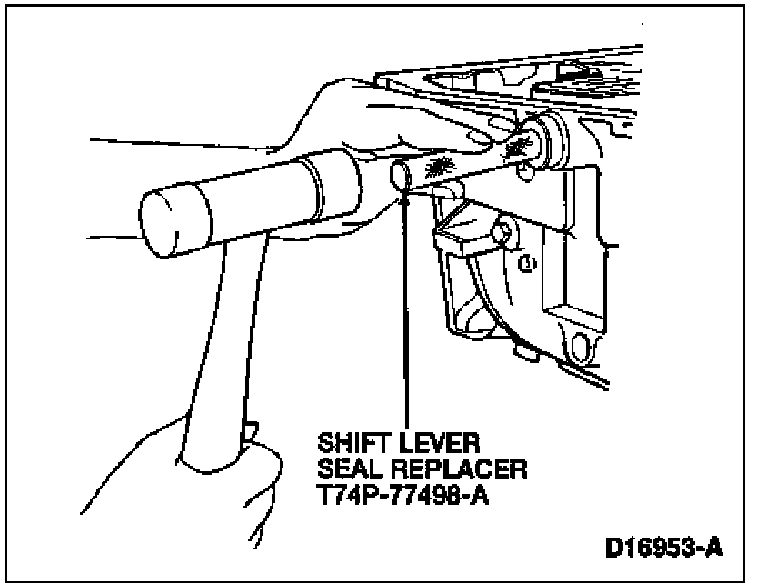 31. Install manual control lever oil seal using Shift Lever Seal Replacer T74P-77498-A.