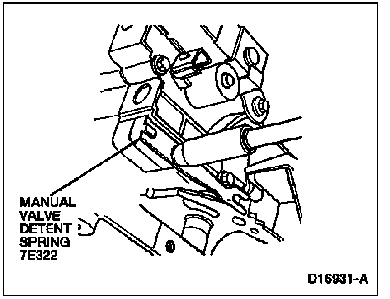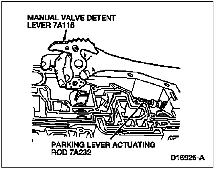 35. Position manual valve detent lever and parking lever actuating rod into case. Parking lever actuating rod must be positioned over parking pawl.