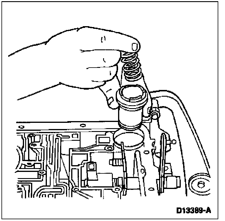 Install reverse band servo spring and reverse band servo piston and rod. When piston and rod assembly replacement becomes necessary or when reverse band has been replaced, determine the correct length of the reverse servo piston and rod, and proceed as follows: