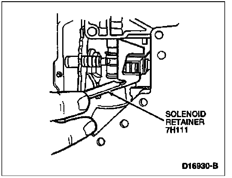 45. Install the solenoid retainer. Loosely install one long 6mm bolt.