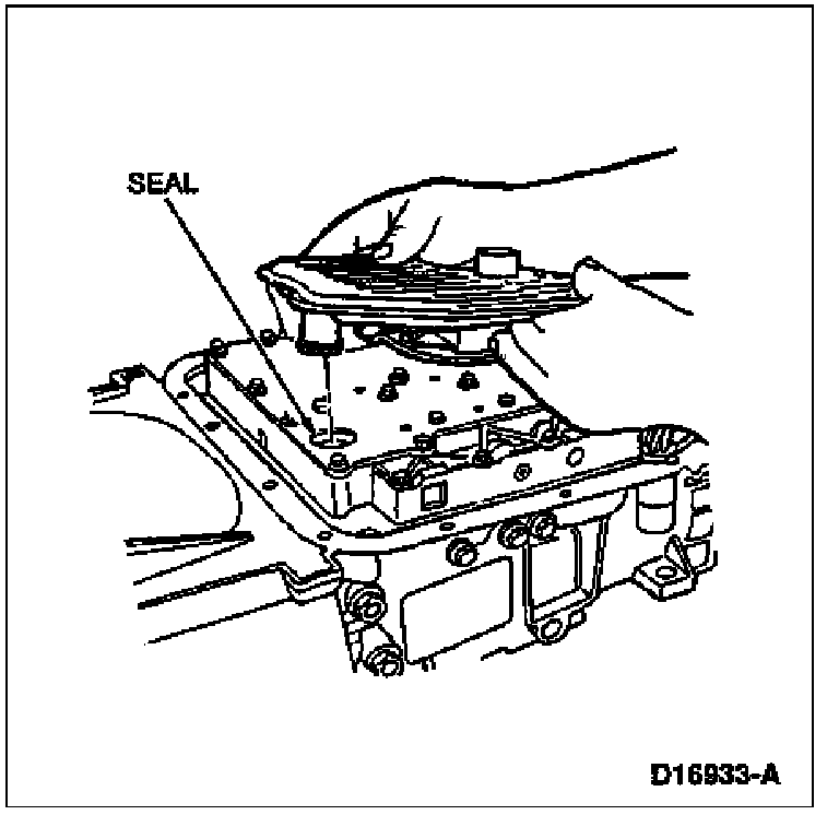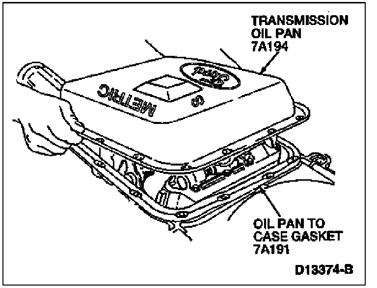 55. Install new oil pan to case gasket and transmission fluid pan. Tighten all transmission pan screws to 12-15 Nm (9-11 lb-ft).