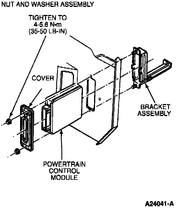 5. To install, follow removal procedures in reverse order. Tighten PCM retainer screw to 3-4 Nm (27-35 lb in). Tighten engine control sensor wiring connector retainer bolt to 4 Nm (35 lb in).
