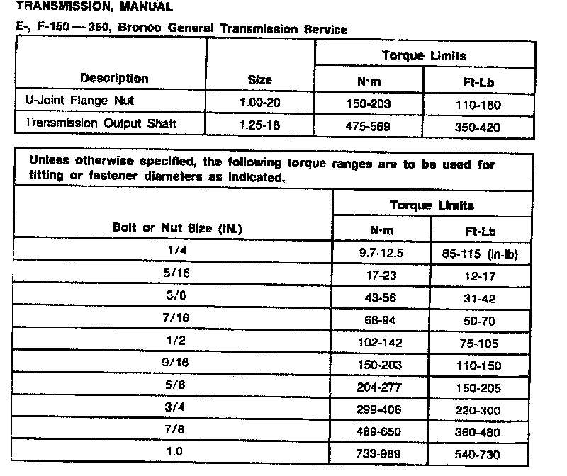 M/T Torque Data