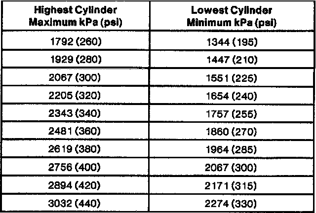 Compression pressures are considered normal if the lowest reading cylinder is within 75 percent of the highest.