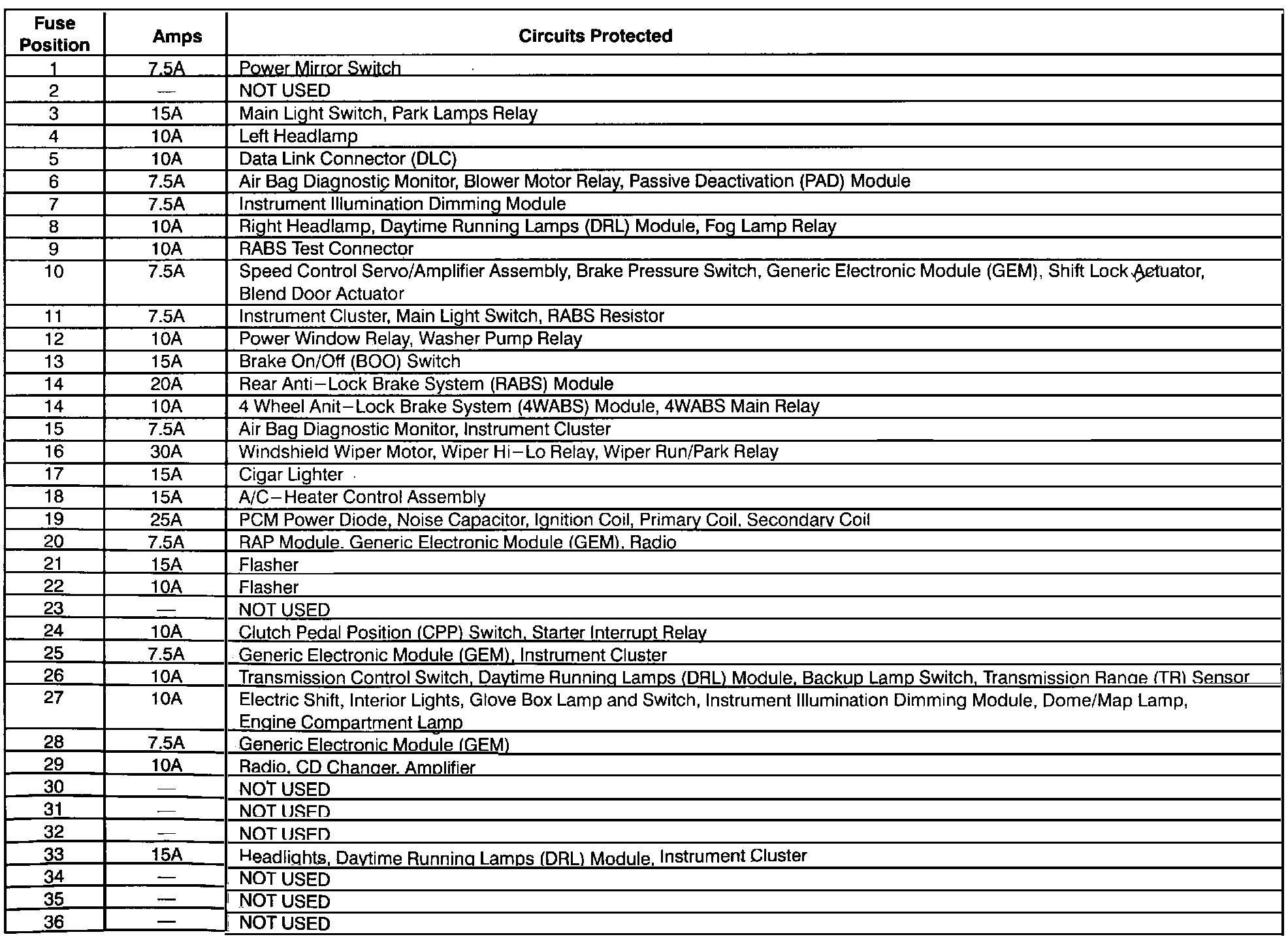 Instrument Panel Fuse Panel (Part 2 Of 2):