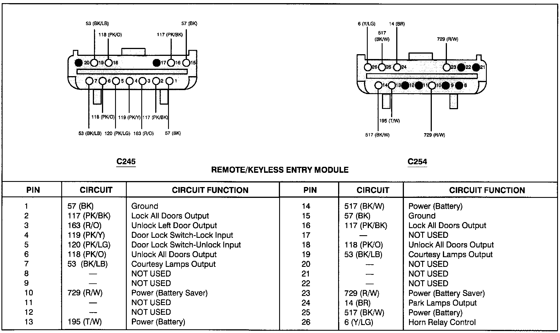 Remote/Keyless Entry Module (C245 & C254):