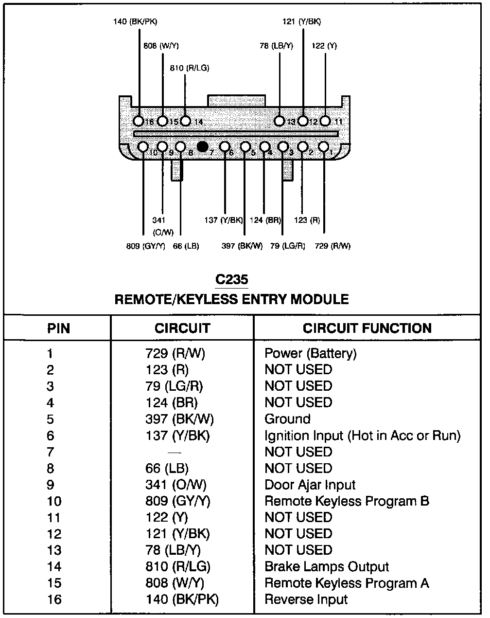 Remote/Keyless Entry Module (C235):