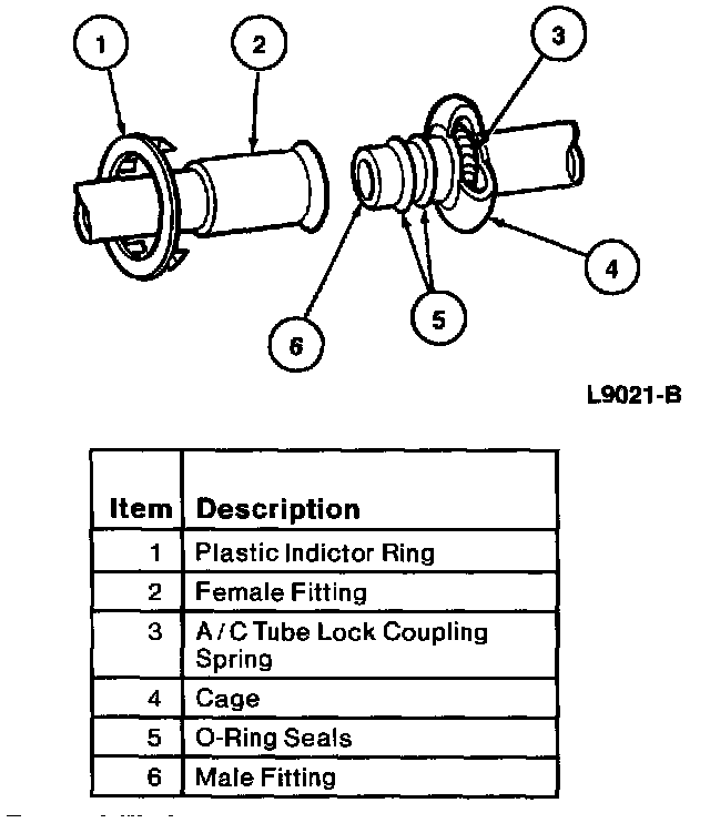 - Use only the green O-ring seals listed in the Ford Master Parts Catalog for the spring lock coupling.
