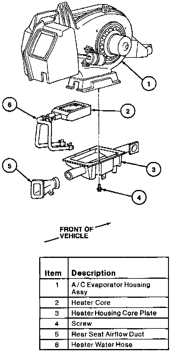 6. Remove A/C evaporator core and rocker arm adjusting screw from case.