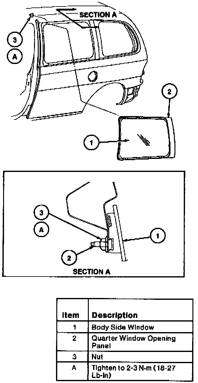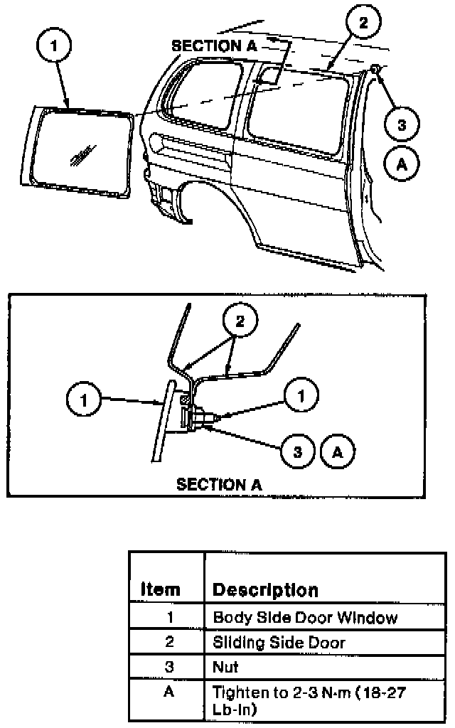 1. Remove the quarter trim panel if removing left-hand body side window. Remove sliding door trim panel if removing RH body side window.