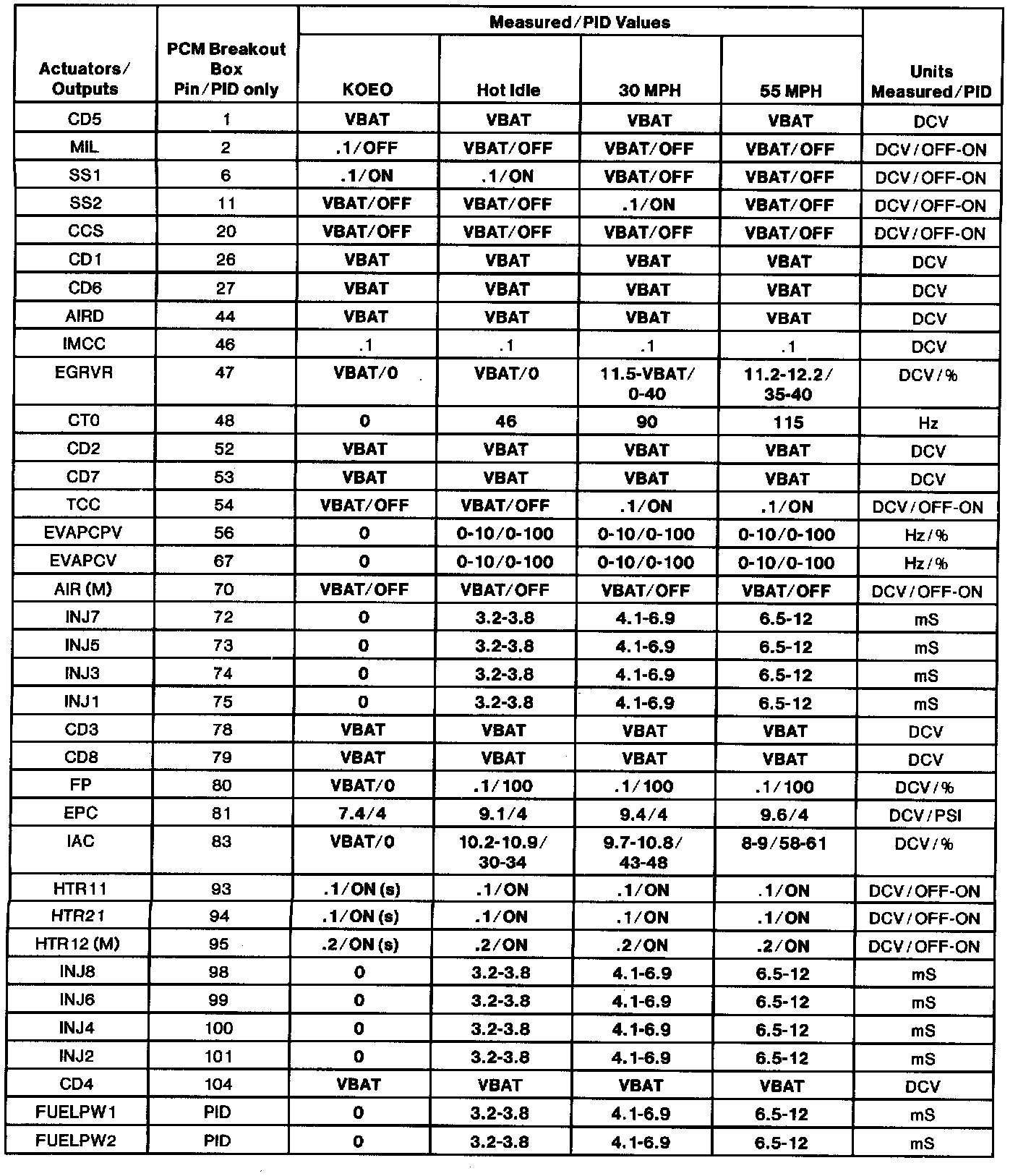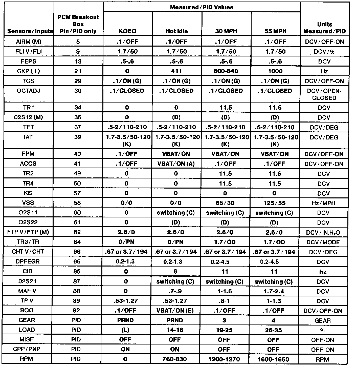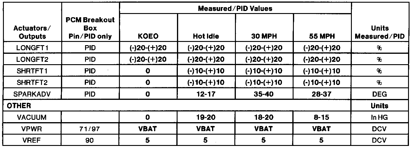 (H.) Values shown are commanded by the PCM and may not be actual.