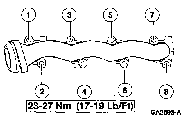Tighten the manifold hardware in the sequence shown.