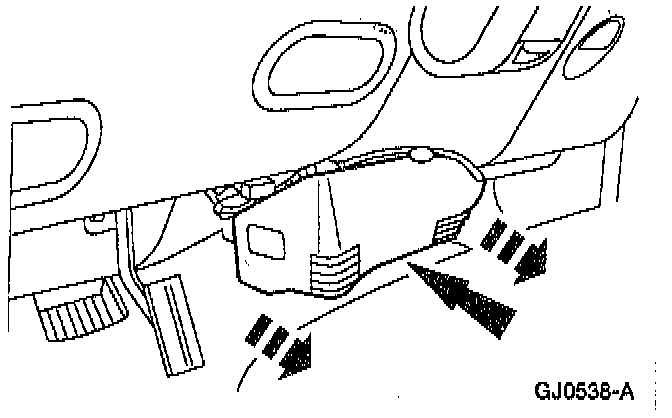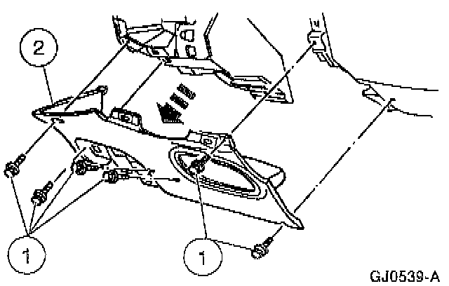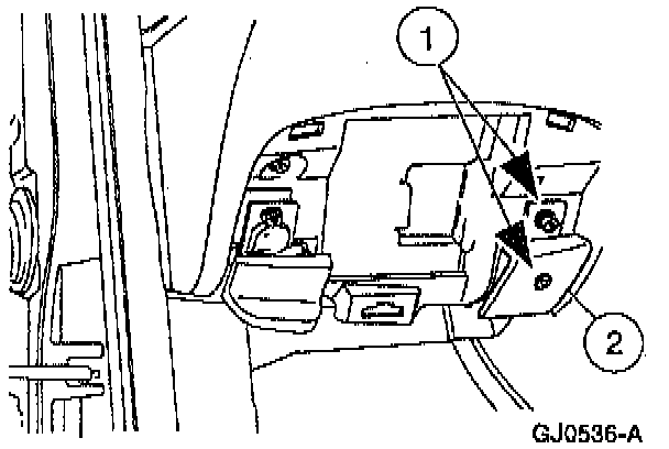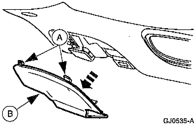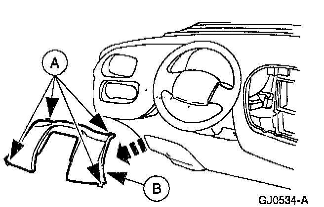 2. Release the (A) clips and remove the (B) lower instrument panel steering column cover.
