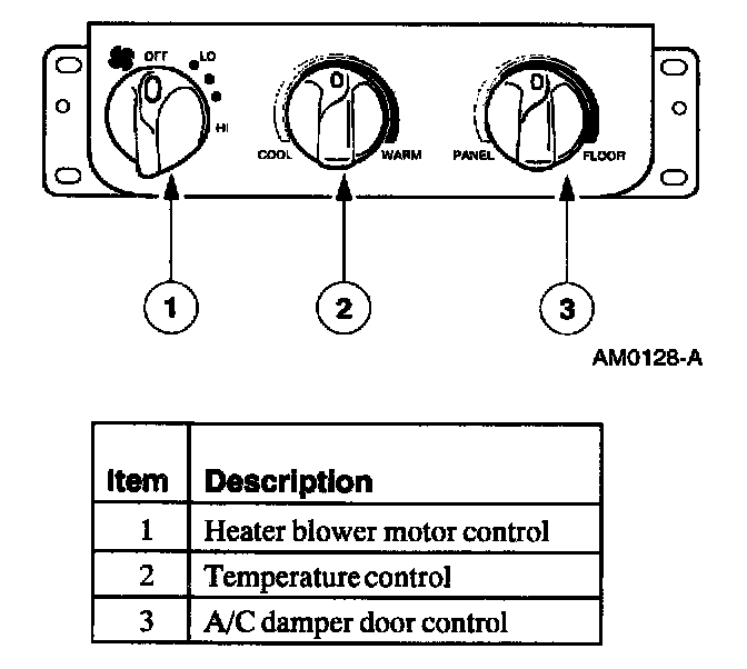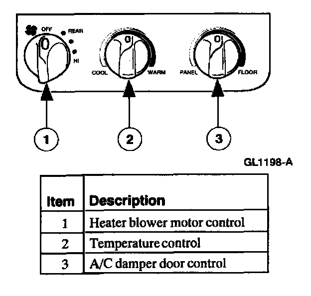 The climate control system inputs are selected manually from the climate control head.Manual Climate Control Head (In-Dash)