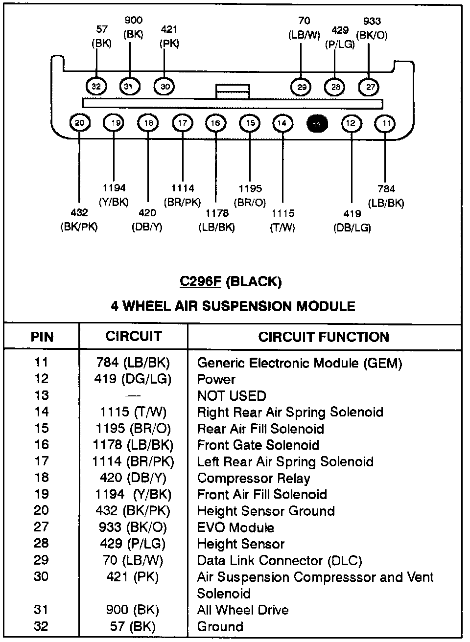 4 Wheel Air Suspension Module (C296):