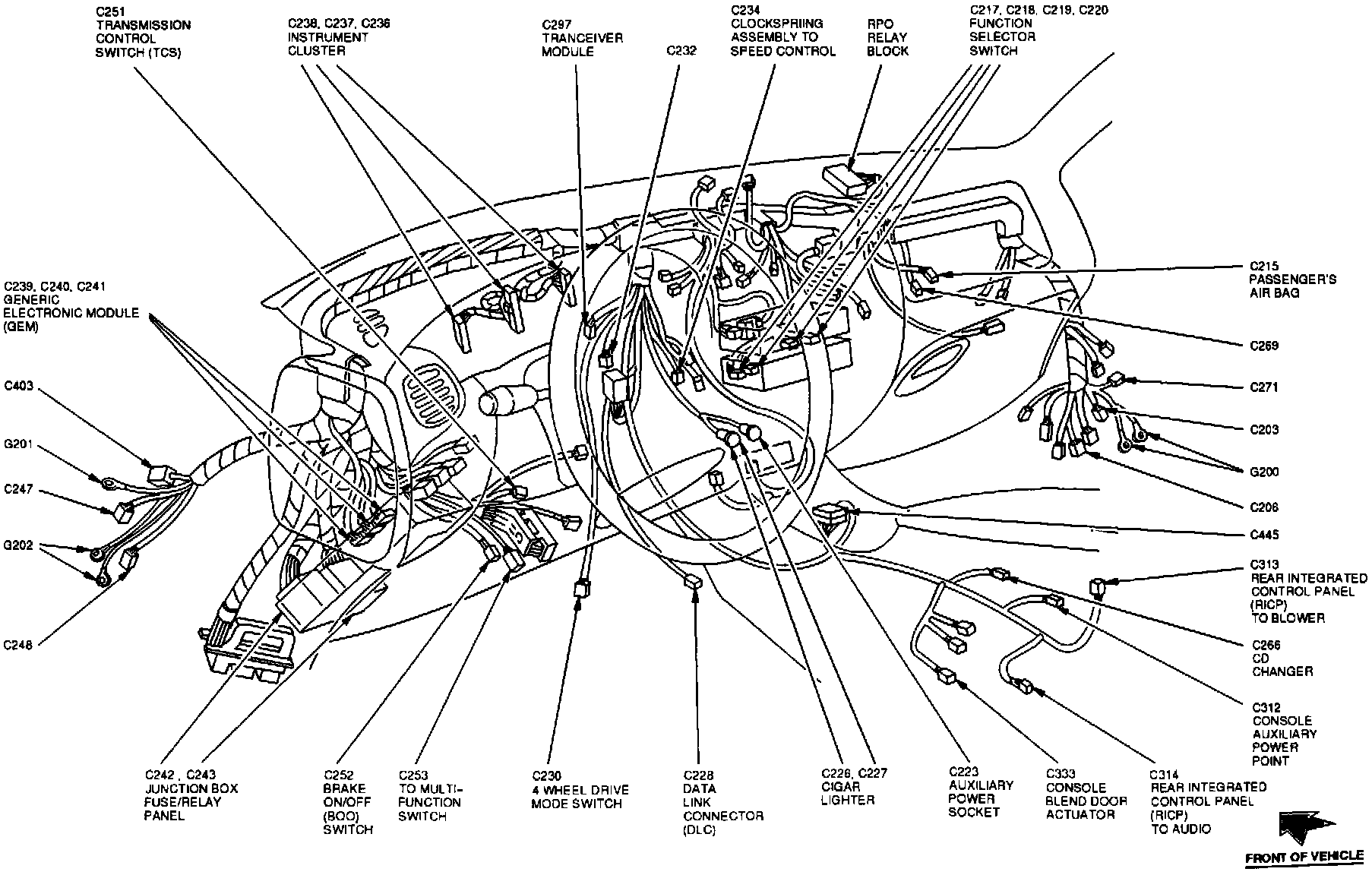 The Data Link Connector is located behind the center of the instrument panel.