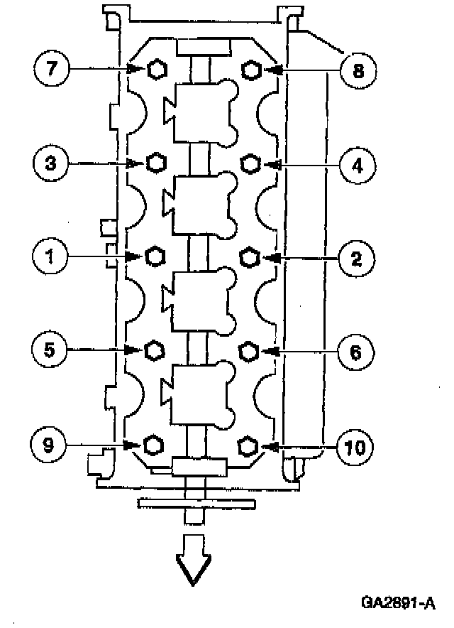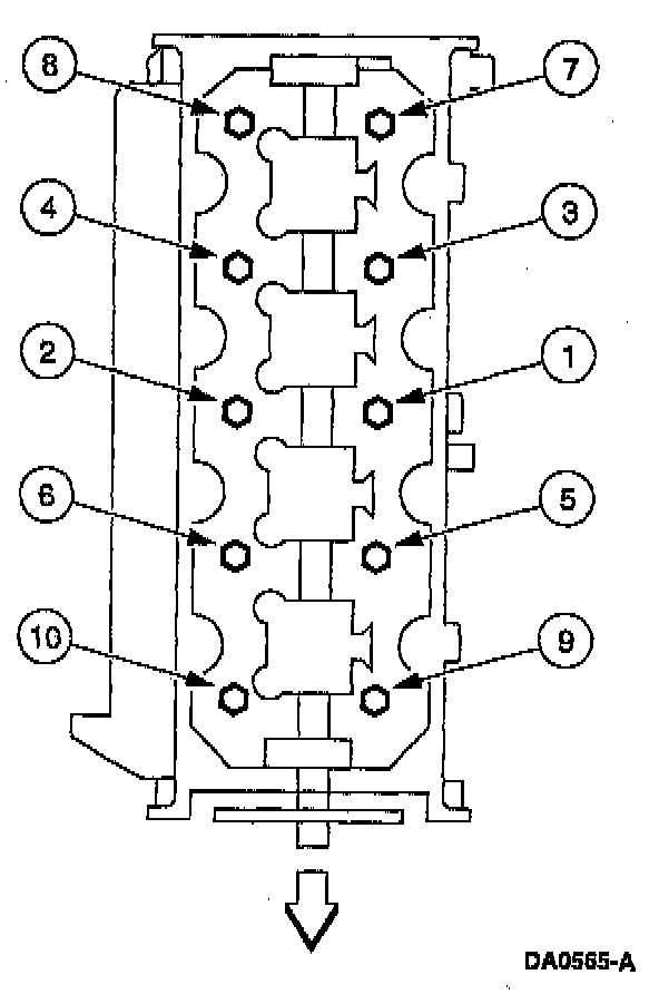 Tighten the LH cylinder head bolts in three stages in sequence shown: