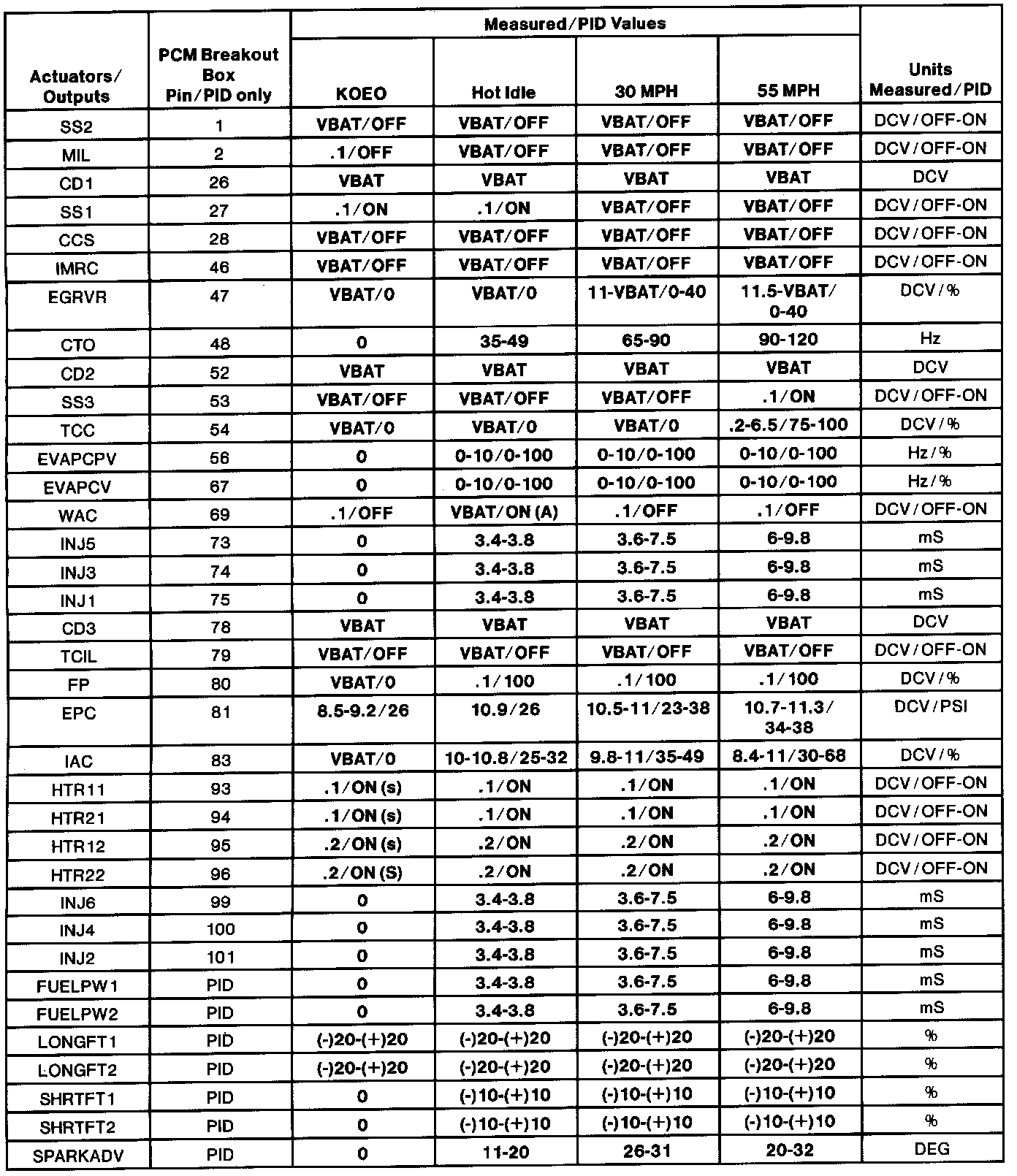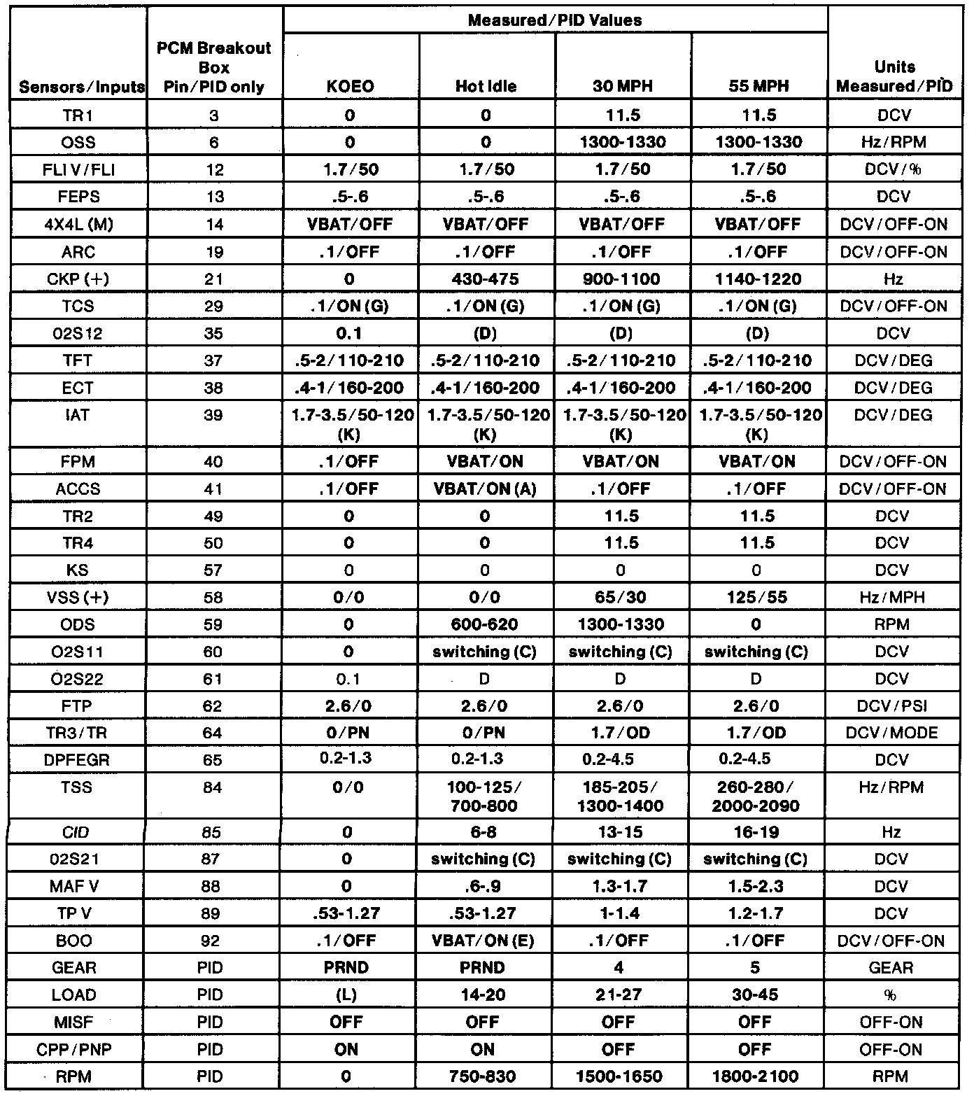 (H.) Values shown are commanded by the PCM and may not be actual.