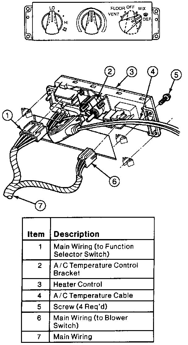 4. Remove four screws retaining heater control to the instrument panel.