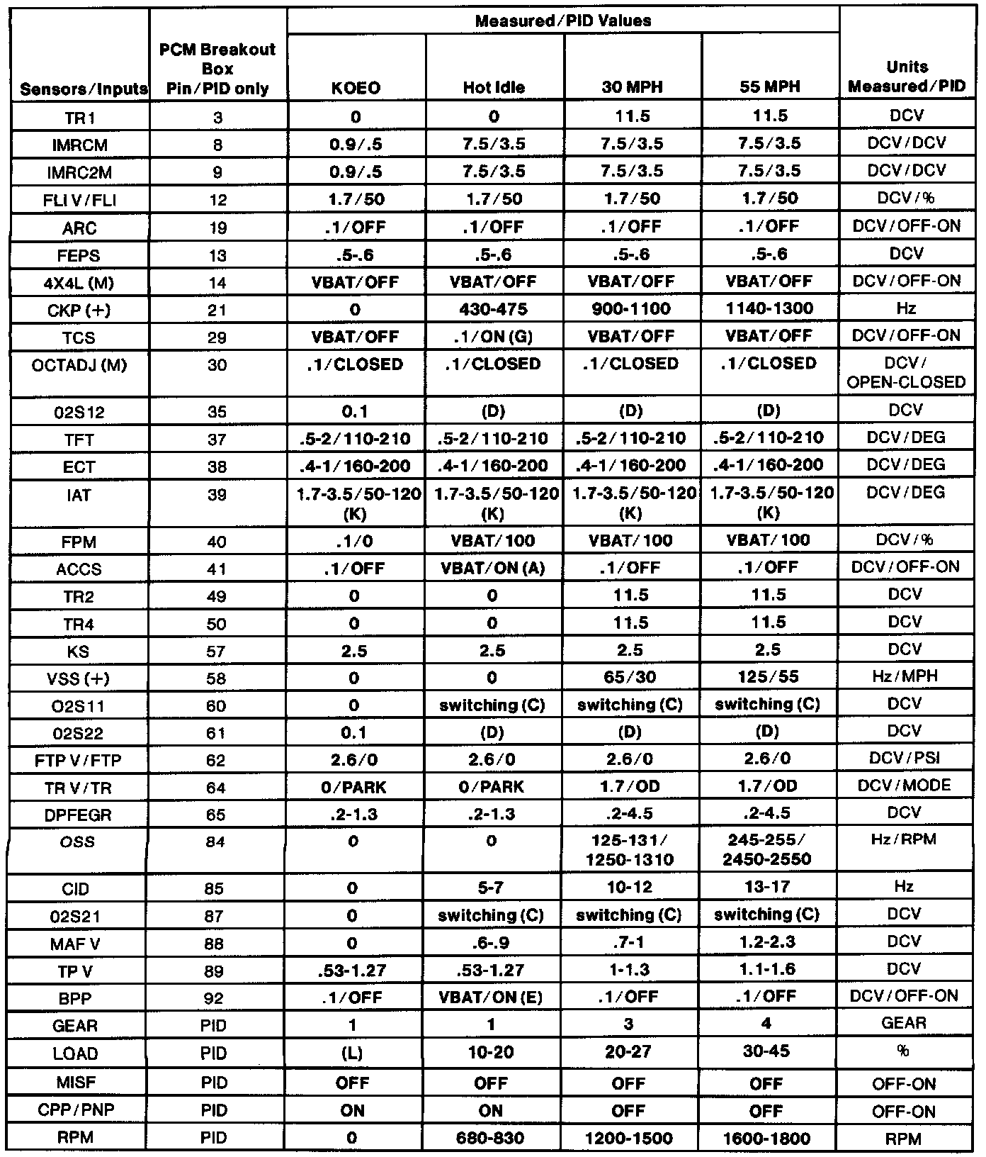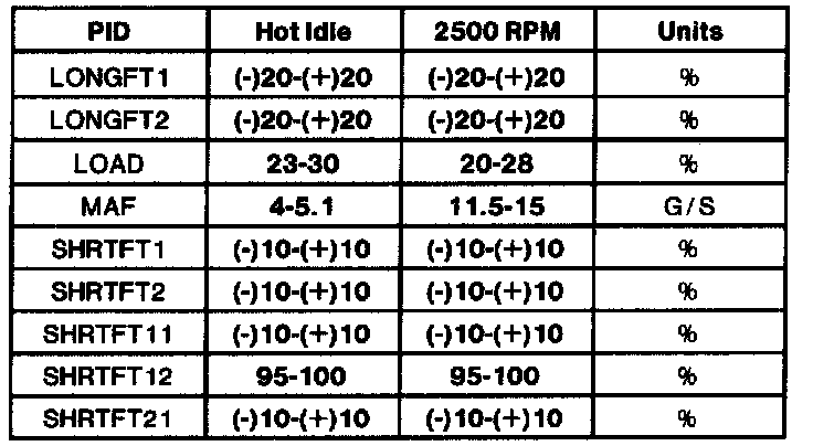 - All generic OBD II readings under no load (PARK or NEUTRAL).